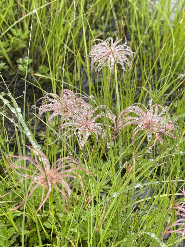 雨の日だからこそ輝く植物たち。苔や地衣類もそうですが、花を終えたチングルマも水滴を纏ってその存在を際立てていました。
