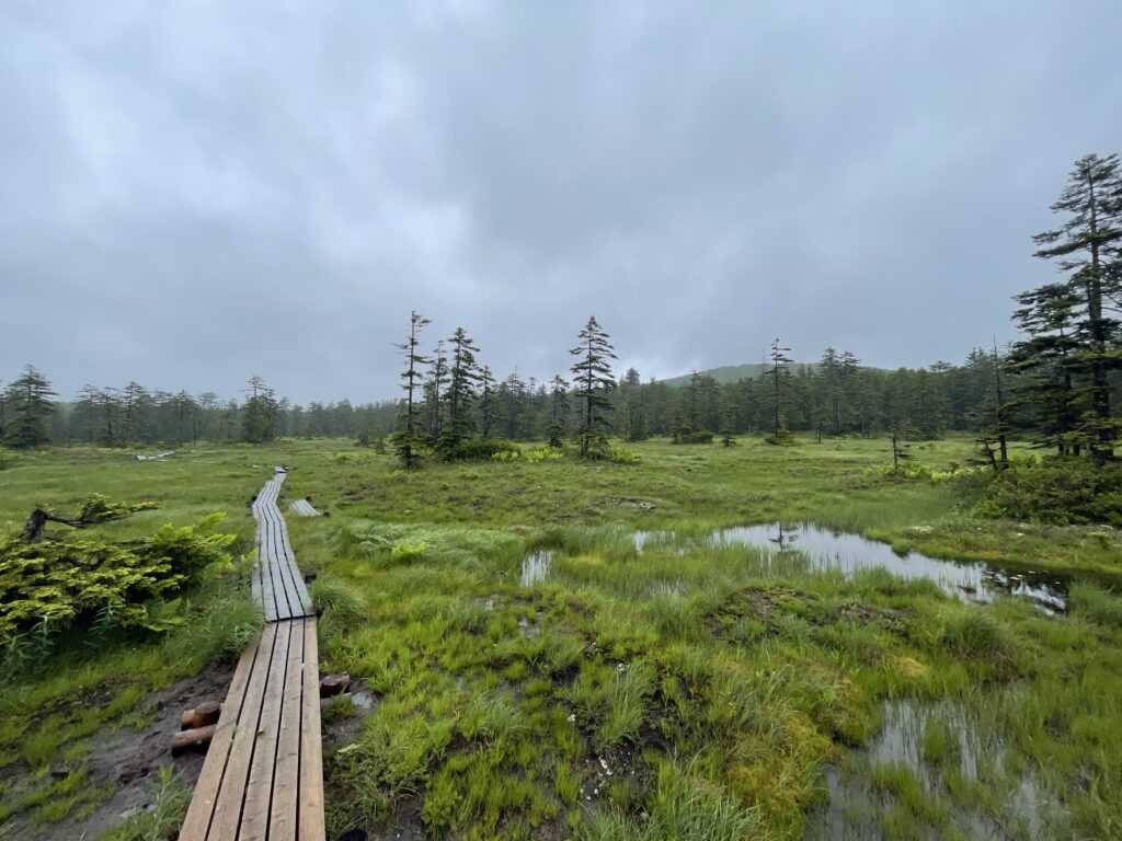 今日から7月です。あいにくの雨模様でしたが、明日の浮島湿原ツアーの下見に行ってきました。