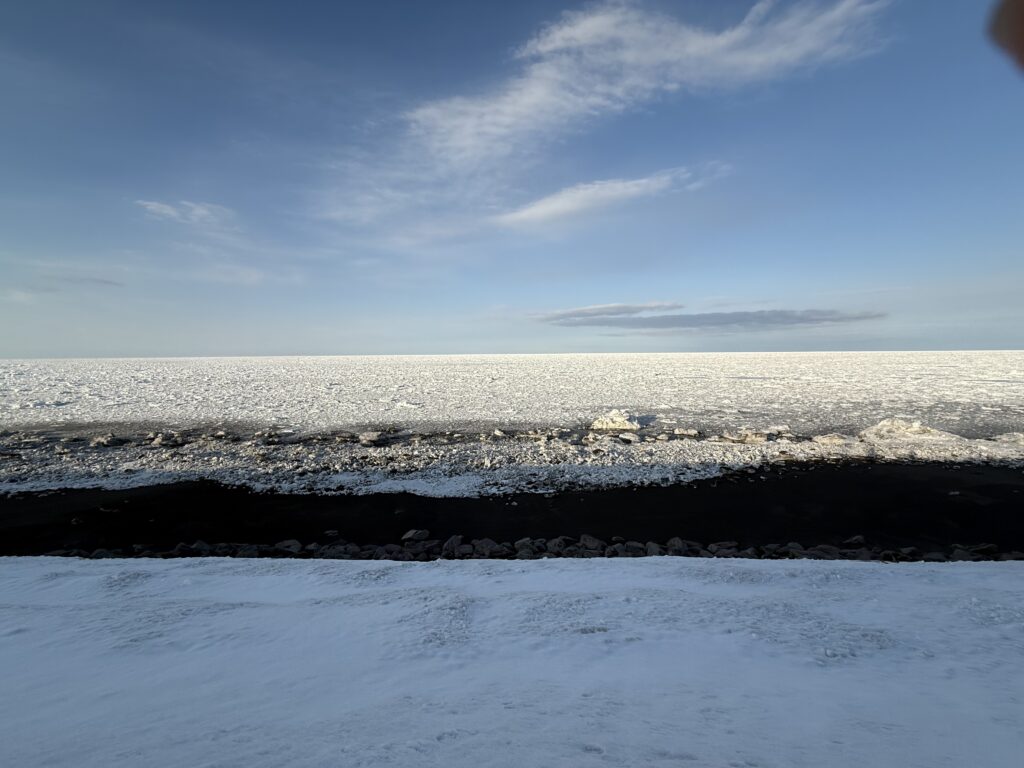渚滑川水系は氷が落ち春の川へと変化しています。一方、オホーツク海に目を向けると紋別の海に流氷が戻ってきています。