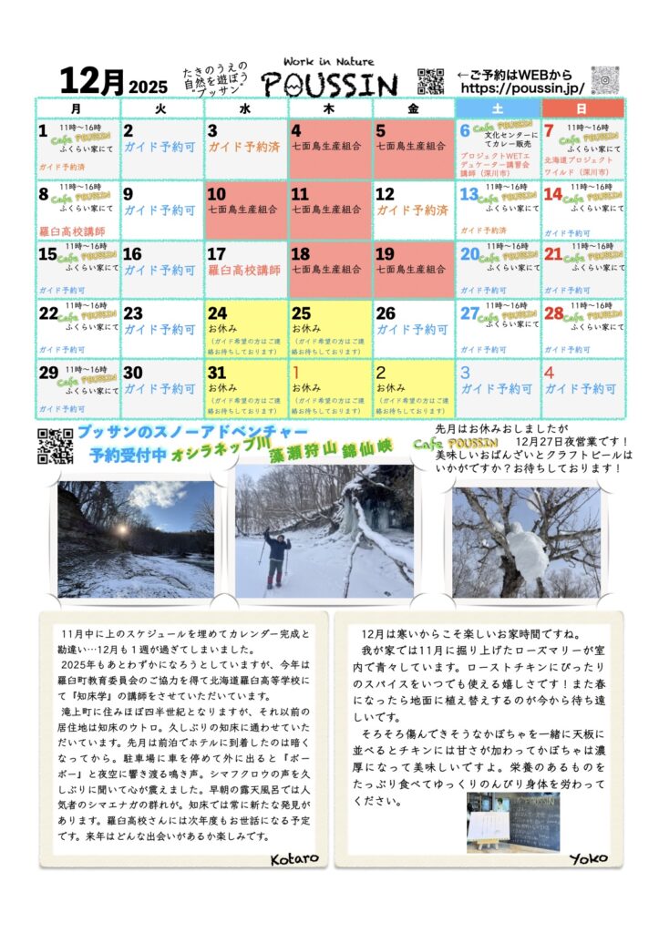 早くも12月となってしまいました。遅ればせながらカレンダーを掲示させていただきます。