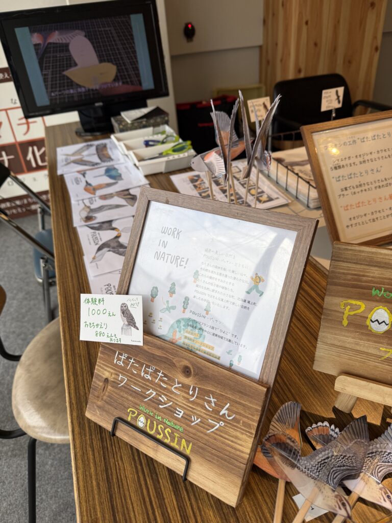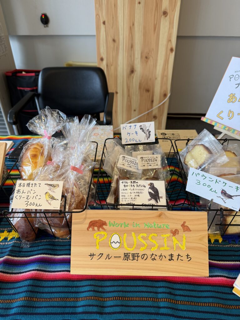 上川町PORT様、紋別市おハコ様にお声かけをいただき、『ぱたぱたとりさんワークショップ』と『サクルー原野のなかまたち』焼き菓子とパンの販売をさせていただきました。