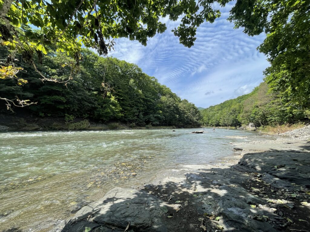そして本番!川の上流部に行ってオショロコマを狙います。そんなに遠くへ飛ばさなくても大丈夫!美しい流れで美しいオショロコマを釣ってみましょう!