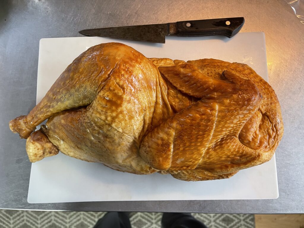 秋に組合長さんから「コータローさん時間ある?」と声をかけていただき、11月から12月にかけて七面鳥生産組合のお仕事をご一緒させていただきました。アルバイトです。食肉製造過程を詳しく体験させていただき貴重な1ヶ月を過ごさせていただきました。そのスモークターキーを昨日切り分け本州の息子たちへ送り、つまみ食いで食べました。本当に美味しい!! 写真の製品は半身で2.4kg。鶏に比べるとかなり大きいです。大きいものは半身で4kgを超え。大家族でも十分なサイズです。送った残りは年越しのお供としていただきます。日本では馴染みの少ない食材ですがみなさんもぜひ食べてみてください。オススメです!!